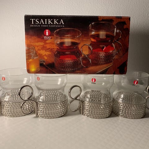 Iittala käyttämätömät Tsaikka lasit. Kullanväriset pidikkeet.