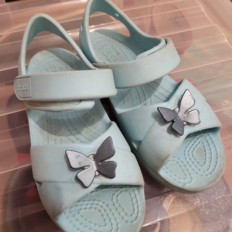 Crocs lasten sandaalit, koko 27. Tarrat toimii hyvin. 1 kesä käytetty.