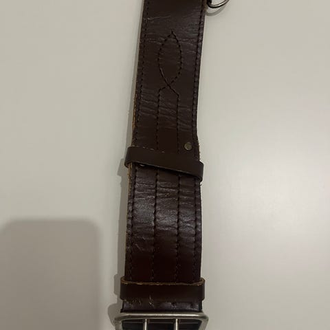 Myydään käytetty päällystövyö. Ehjä ja käyttökelpoinen. Koko pituus 130 cm, josta ns hyötypituus 125 cm. Komentohihnan (rähinäremmin) hyötypituus 122 cm. Vyöosassa ylimääräisiä reikiä, jotka eivät käyttöä haittaa.