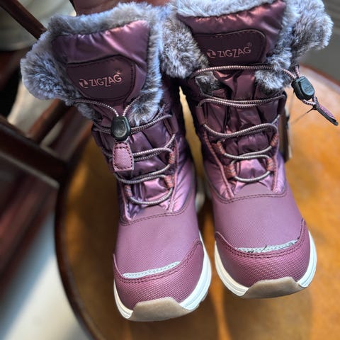 Myydään erittäin hyväkuntoiset ja tyylikkäät, vain muutaman kerran jalassa pidetyt ZigZag vedenpitävät talvikengät koossa 28. Varressa pehmeä karvareunus.