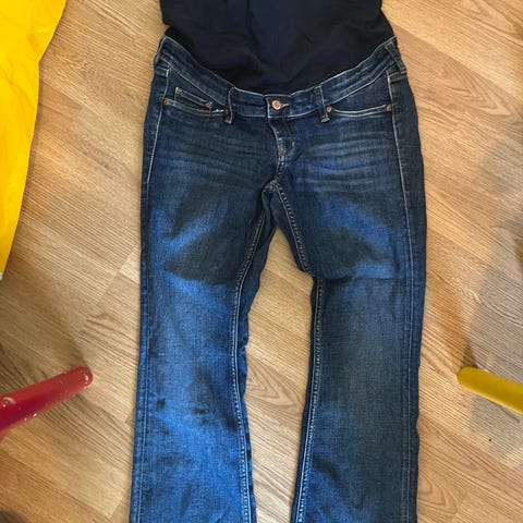 H&M äitiysfarkut, malli Skinny High Rib. Kokomerkintä 40, mutta vastaa mielestäni paremmin 38 kokoa. Ehjät ja siistit, vyötäröresori mukava.