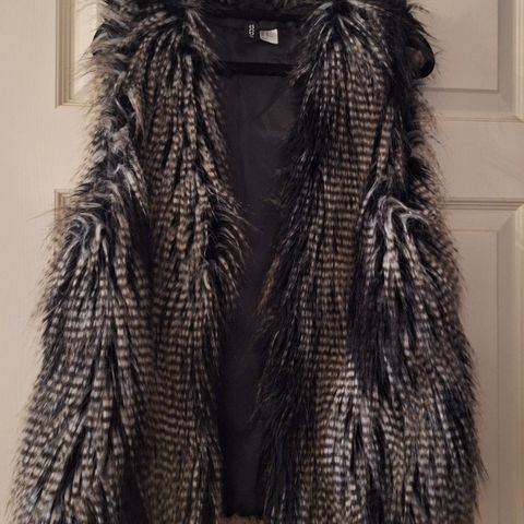 Ruskea mokkanahkainen liivi, tekoturkis somisteet.