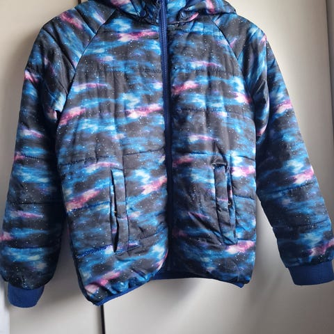 H&M sininen lasten takki, koko 140 cm. Helmassa kiristys mahdollisuus. Hyväkuntoinen.