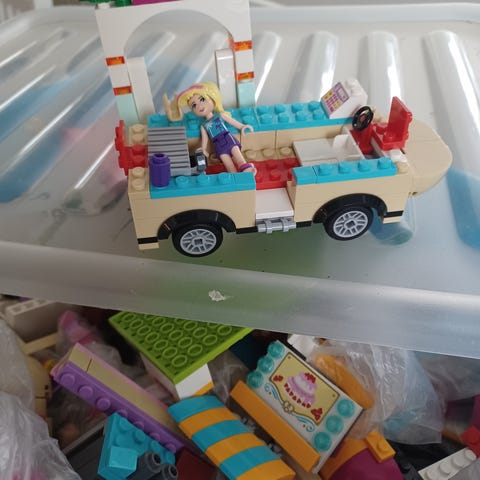 Myydään legoja laatikko, sis Lego Friends ja muita legoja, ukkeleita, levyjä
