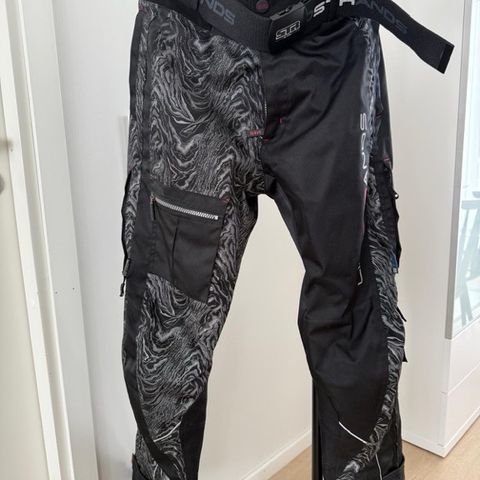 Goretex housut, joissa integroidut polvisuojat sekä kustomoidut lonkkasuojat. Housuissa irrotettava sisävuori, joiden avulla housuja voi käyttää eri lämpö olosuhteissa.