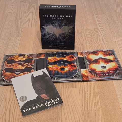 The Dark Knight Batman elokuva DVD, sisältää kaksi levyä. DVD-levyillä on elokuvan lisäksi lisämateriaalia.