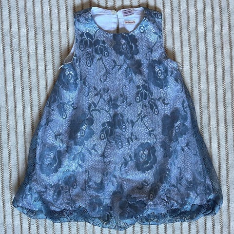 Kaunis mekko arkeen tai juhlaan, koko 116. Mekossa on pitkät hihat ja kukkakuvioinen hameosa. Irroitettavasta rusetista on tullut vähän nyppyä mekkoon.