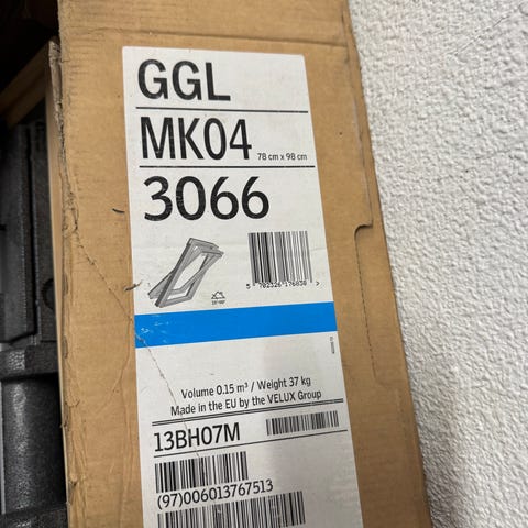 Velux kattoikkuna asennustarvikkeineen.