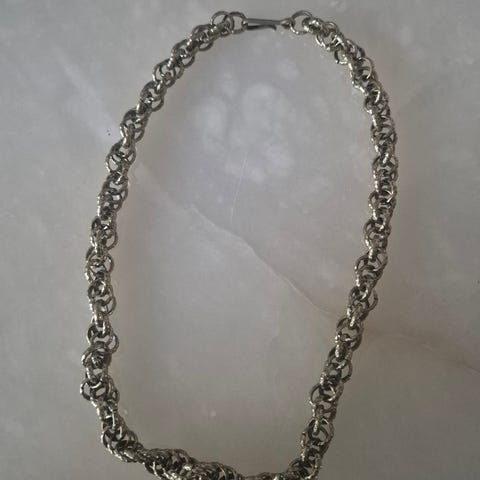 Puhdistettu, vanha koru. Tätini jäämistöstä ennen vuotta 1994. Langat merkkinä joistain merkinnöistä, käyty korun renkulat läpi loopilla leimaa etsien: ei löytynyt. 1994 kultasepällä käyty aidoksi toteamassa, siitä ei todistusta.