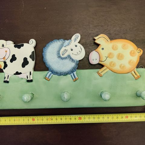 IKEA Lasten naulakko, muotoiltu pupuksi ajamassa porkkanalla. Leveys n. 30 cm.