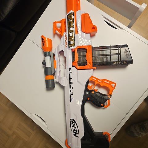 Omassa laatikossaan, toimii , 7 palloa mukana lippaassa.