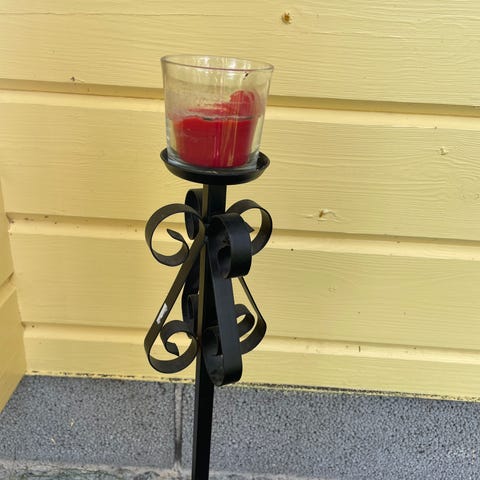 Korkea metallinen kynttilänjalka sisälle tai ulos. Korkeus 67 cm
