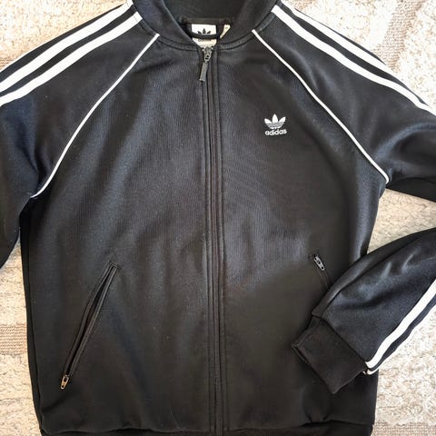 Käytetty useasti ja pesty. Edessä kaksi pientä tahraa, jotka eivät juuri näy ja vasemmalla kyljellä ylhäällä isompi, joka jää piiloon hihan alle. (Yritetty poistaa, mutta en ole omilla puhdistusaineilla sitä saanut poistettua.) Pientä nukkaa siellä täällä, jonka saa poistettua halutessaan. Kauluksen kiristysnauhaa ei ole, mutta siihen saa laitettua halutessaan uuden. Muuten siistissä kunnossa.