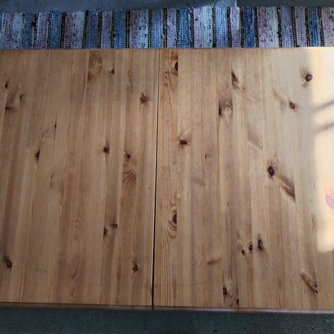 Pöydän saa pidennettyä kahdella pöydän alla olevasta lankuista silloin ihmisiä mahtuu 4 per puoli eli 8 . Pöytä on painava ja tukeva. Vähän käytön jälkiä löytyy muuten toimiva pöytä.