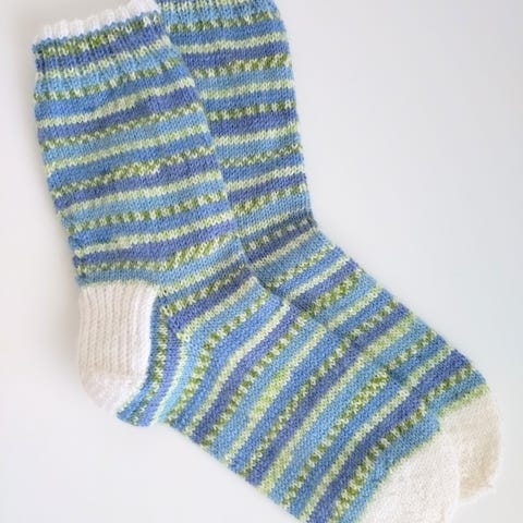 Myyn uudet villasukat, käsin ommeltu. Lanka Novita. Koko 38. Varren pituus 27 cm ja jalkaosan pituus 24 cm.