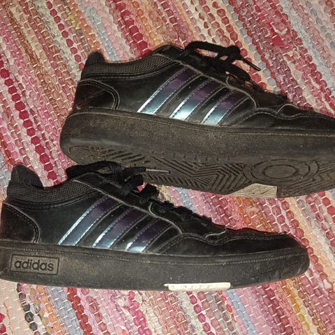 Varsilenkkarit Adidas koko 37,5 värit tummansininen ja vaaleanpunainen.Kengissä on nyöritys ja pehmustettu sisäosa mukavuutta varten.Siistit.