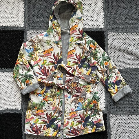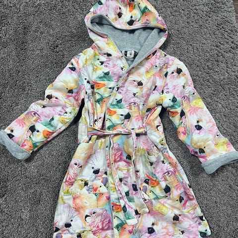 Myydään Molo merkkinen koira-aiheinen kylpytakki kokoa 110/116 cm. Tämä on ollut todella vähällä käytöllä joten en löydä moitteita. Pesty nyt ensimmäisen kerran ennen myyntiä. Kaksi taskua edessä ja huppu. Nouto tai postitus, kulut ostajalle!