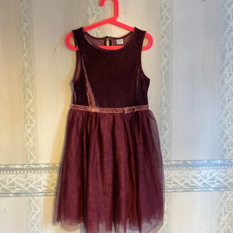 Girls wear from Cellbes -merkkinen pitkä juhlamekko, viininpunainen, 134 /140 cm. Selässä napitus. Kaikki napit on ommeltu uudelleen ennen myyntiä.