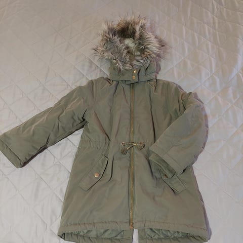 Zaran siistikuntoinen, hupullinen takki jota on pidetty vain juhlissa ja kauppamatkoilla tms.