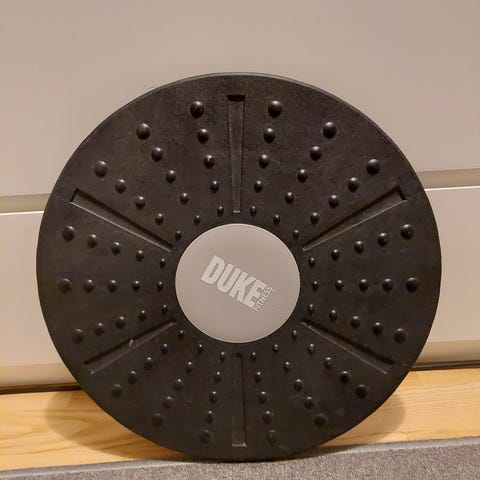 tasapainolauta, valmistettu mustasta muovista. soveltuu tasapainoharjoitteluun ja kuntoutukseen.