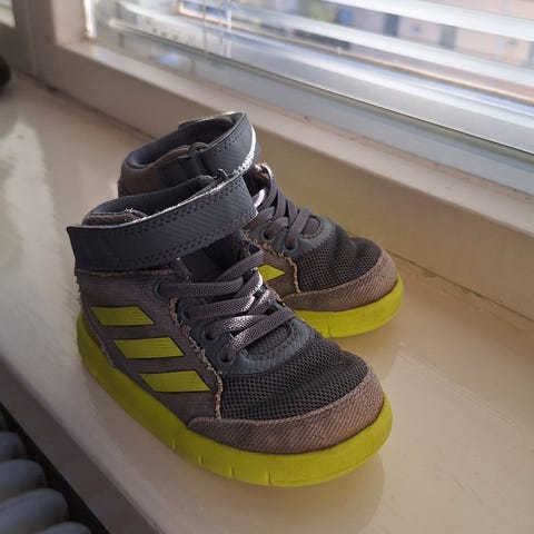 Myydään hyvä kuntoinen Adidas lasten tennarit, koko 22, musta ja punainen väriyhdistelmä.