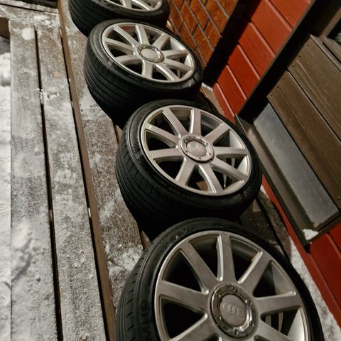 8x18 ET35 tuplajako vanteet 5x100/5x112. Yksi vanne saanut ison osuman ja toisessa lommo sisäkehällä, kaksi ok kunnossa. Keskikuppeja 3kpl.