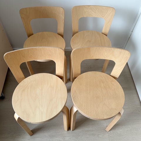 Omasta projektista jäi ylimääräiseksi muutamia Artek 66 ja 65 tuoliin sopiva takajalkoja. Ovat ns. vanhaa pituutta, jalan korkeus on 39,5 cm.