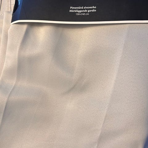 Hyvät siistit itse ommeltu paksummasta kankaasta tumman harmaat pimennysverhot. 154x236cm.