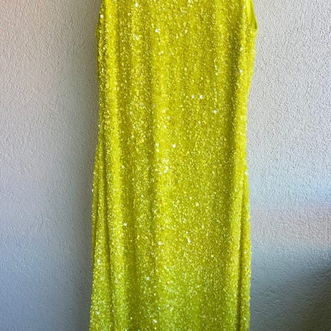 Hihaton paljettikankainen kotelomekko. Mekossa on pyöreä pääntie, sekä piilovetoketju takana. Mekossa on vuori. Käyttämätön. Väri ruusukulta.