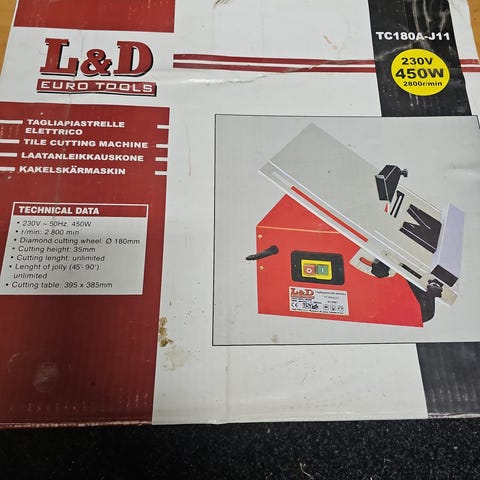 Todella vähän käytetty vesi laatta leikkuri.Säilytetty kuivassa ja lämpimässä paikassa.Ainoat miinukset on vesi kaukalosta puuttuu pohjatulppa ja vähäisen käytönn takia pitää hiukan terästä pyöräyttää että lähtee liikenteeseen mutta varmasti ku käyttää enemmän niin alkaa sekin toimimaan