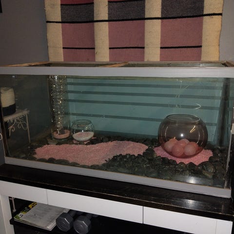 Näyttävä akvaario kaarevalla etulasilla. . Sopii myös terraarioksi tai jyrsijälle. Akvaario 300 l. Kantta on korjailtu, mutta on täysin toimiva.