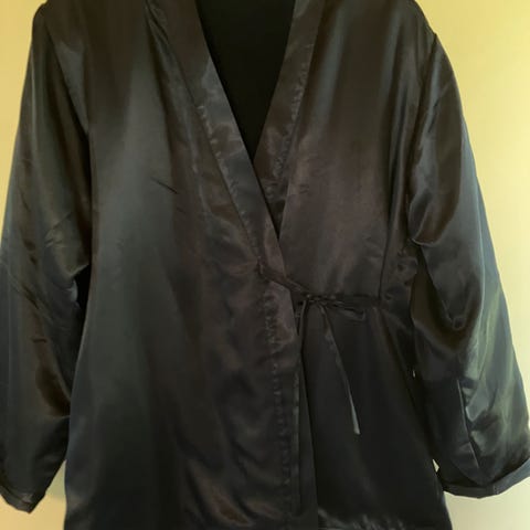 Copelia silkkiyöpaita. Väri on punainen, haalistunut pesussa. Koko on L. Mitat:kai-kai 54cm, olka-helma 123cm. Sisäpuolella tukivuori/yläosan taitoksen alla kuvan mukainen. Muuten täysin ehjä.