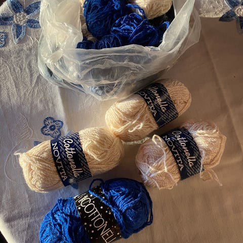 Novita Nella puuvilla-akryyli lankakerä, paino 50 g, väri valkoinen. Lanka koostuu 54 % puuvillasta ja 44 % polyakryylistä ja 2% klorokuitu. Lanka on konepestävä ja soveltuu neulontaan ja virkkaukseen. Lanka on valmistettu Suomessa.