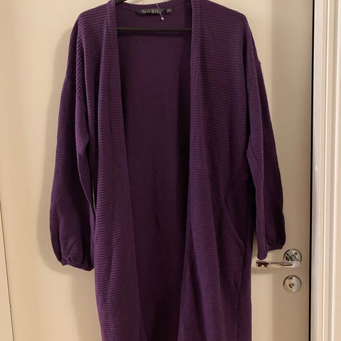 Kaunis struktuuripinta ulkopuolelta (sisäpuolelta sileä) ja sivuissa isot taskut. Kangas on 71% luomupuuvillaa, 27% polyesteriä ja 2% elastaania eli kangas joustaa. 30 asteen hienopesu. Mitta olalta helmaan 89cm ja ympärysmitta hihojen alta mitattuna 116cm. Noshin neuletakeissa M on suht reilu koko ja sopii hyvin L-koon käyttäjälle (katso nuo mitat).