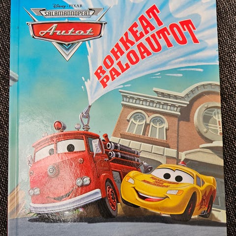 Tarina ja erilliset autopalat jotka voi laittaa oikeille paikoille kirjan sivuilla.