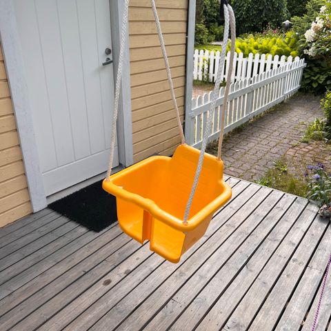 Annetaan jämäkkä pesun tarpeessa oleva metallinen keinujen runko. Vaatii uudet köydet ja istuimet.