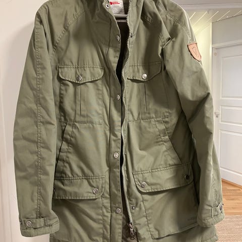 Fjällräven Talvitakki on musta naisten talvitakki, koko S. Takissa on huppu ja se on suunniteltu tarjoamaan suojaa kylmiltä säiltä.