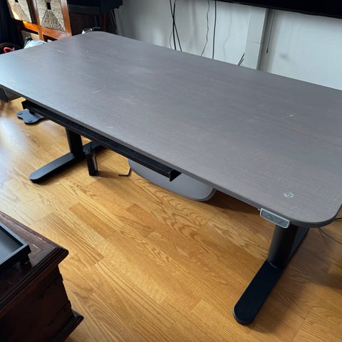 AJ-tuotteiden sähkösäätöinen työpöytä. Kaareva pöytälevy, 1600x800 mm, musta jalusta, koivu. Kunto erinomainen, kuin uusi. Linkki AJ-tuotteiden vastaavaan uuteen: https://www.ajtuotteet.fi/toimisto-neuvottelu/poydat/tyopoydat/sahkopoydat/sahkopoyta-jossa-kaareva-poytalevy-875483-875481