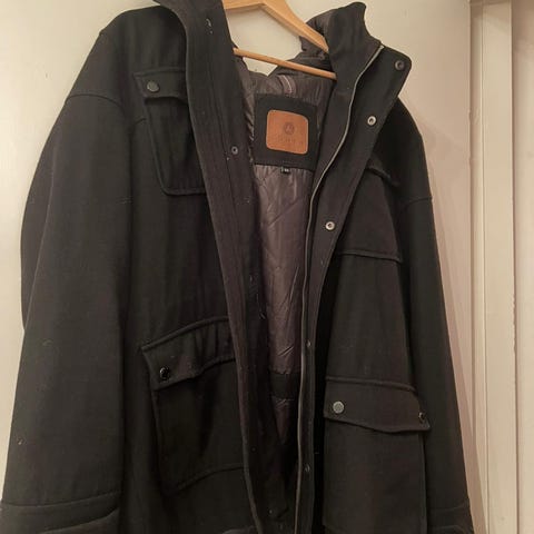 Luhta miesten takki, koko XL, (52) väriltään musta. Takissa on vetoketjullinen ja napillinen edessä oleva suljenta, Neljä etutaskua sekä sisätasku. Takki on valmistettu pehmeästä materiaalista,villakangastakki ja siinä on sisäpuolella värikäs vuori. Sopii arkikäyttöön ja viileämpiin säihin.