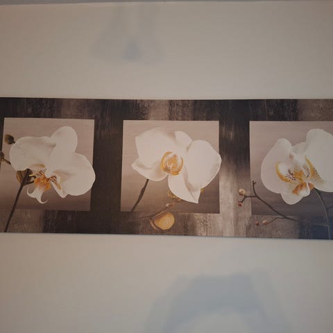 Kukka-aiheinen taulu.Puiset kehykset,lasitettu.