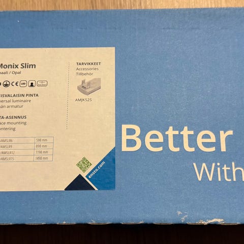 Uusi, pakkauksessaan, remontin yhteydessä jäi käteen, ei tarvittukaan. Sopii hyvin keittiön työtason valaisimeksi. Pistorasiat kahvi/teekeittimiä varten.