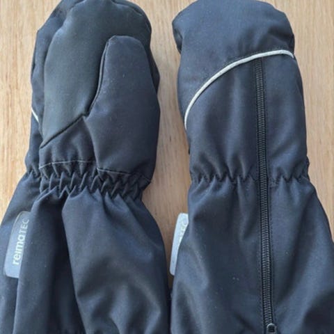 Lämmin Reima toppahanskat koko 1, ~ 6-18 kk, käytetty paljon, reiät ei läpi asti. Bogi välikausihanskat siistissä kunnossa koko 1-2, mutta hanskojen kuminauha on löysä.