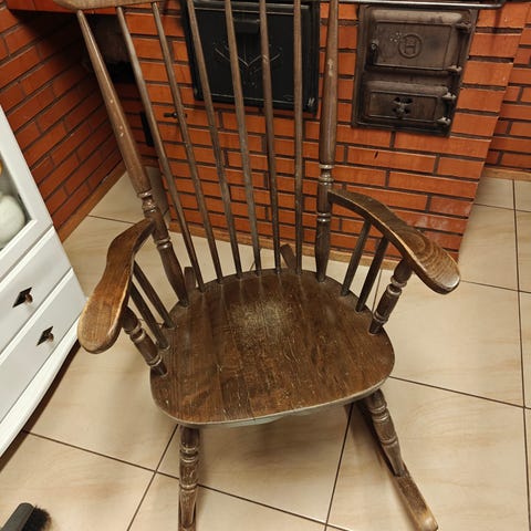 Myydään tarpeettomana vanha keinutuoli. Vankan tuntuinen, istumatestasin. Maalit/lakkapinta kuluneet pois. Pientä fiksattavaa toisessa jalaksessa, liitoskohta raottanut. Myös selkänojassa päällisosassa sekä toisessa nurkkapienassa pientä korjaustarvetta.