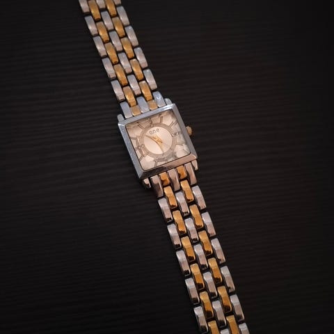 Kaunis naisten rannekello, merkki One. Kuolinpesästä, toimivuudesta ei varmuutta. Pariston vaihto jää ostajalle. Selkää kulumaa on.