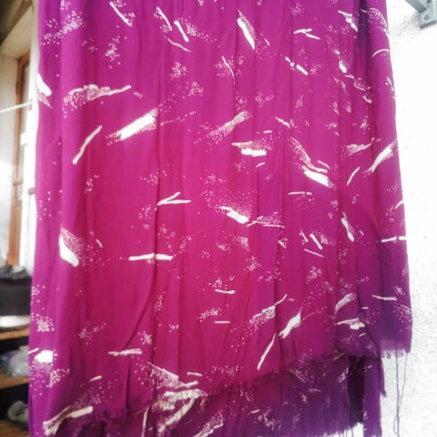 Uusi, käyttämätön, hyvin laskeutuva, ei rypisty helpolla, soveltuu leninkiin hyvin, esim,