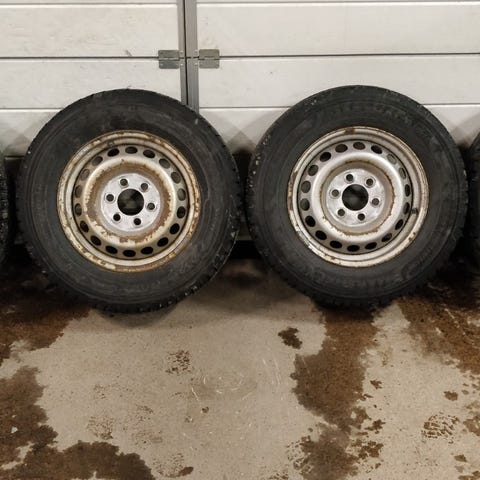 Sarja nastarenkaita sprinter vanteilla. 6x130 pulttijako. Ollut kevyt k-a alla. Kahdessa yli 8mm ja kahdessa noin 6mm pintaa.
