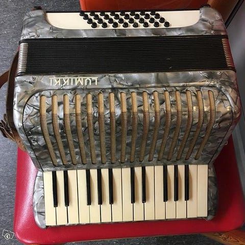 Myydään Hohner Student IVM harmonikka menneiltä ajoilta. Ostettu Bremenin Musik und Radio Haus Warnkesta 1940-luvun loppupuolella (kuva 4). Soi hienosti iästään huolimatta ja osat ovat alkuperäisiä.