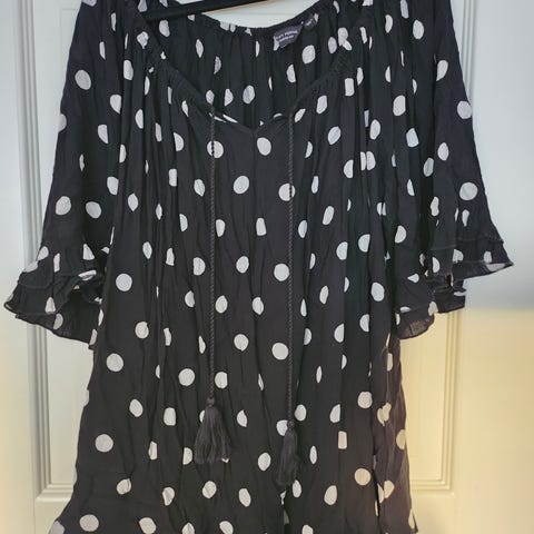 Indiska neulemekko mustassa värissä, koko XL. Mekossa on puolipitkä hiha ja vyötäröllä kiristysnauha. Materiaali: 70% bambu + 30%puuvilla. Mitat: pituus niska-helma 103cm, hihan pituus 30cm, kai-kai 70cm. Nappi kiinnitys, 8 kpl. Virheetön. Maksu käteinen, tilisiirto tai MB postimaksu ( r-pakettina 6e) lisätään hintaan.