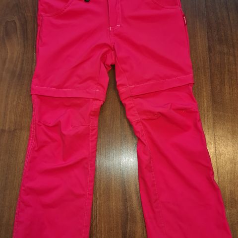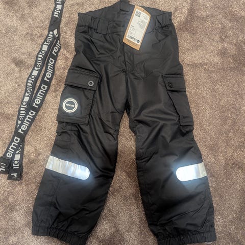 Housuissa päällinen 84 % polyamidia ja 16 % polyuretaania. Vuori ja toppaus ovat 100 % polyesteriä. Housut suunniteltu käytettäväksi kylmissä olosuhteissa ja niissä on säädettävä vyötärö sekä lahkeiden vetoketjut helpottamaan pukemista. Lahkeiden sisäpuolella polyesteriset noin 20 cm pitkät vuorit joiden lahkeensuissa leveät kuminauhat kiristykseen. Edessä housuissa molemmilla sivuilla vetoketjulliset taskut. Vyötäröllä leveä kuminauhakiristys ja vyötä varten lenkit. Olkaimina leveät Reima-tekstiset kuminauhat joiden pituutta on helppo säätää tarranauhojen avulla. Housut pesty hienopesulla myyntiä varten.