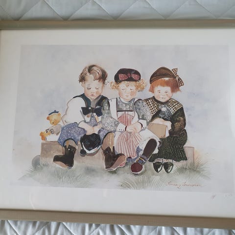 Leveys 28,5cm, korkeus 35cm. Kehyksinä on valokuvakehys, eli voi pitää myös pöydällä. Käteismaksu. Vain nouto.
